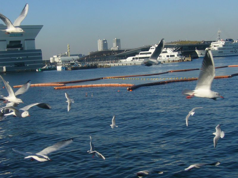 誰かがエサをあげたので、突然カモメが飛びまくり(笑)