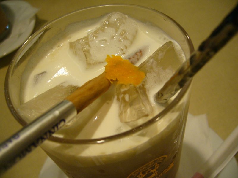 シナモンスティックで、ミルクと紅茶をクルクルッっとして