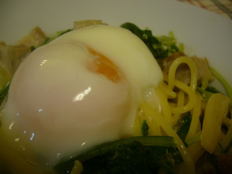 クリームと半熟の黄身がからんだ麺は、まろやか~。